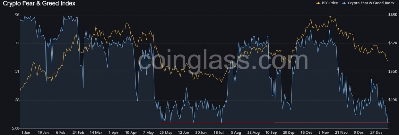 4. Если посмотреть историческое колебание цены Биткойна, при таком уровне страха, то вниз цена уходит ещё на 5%, а потом, так или иначе, идёт вверх;