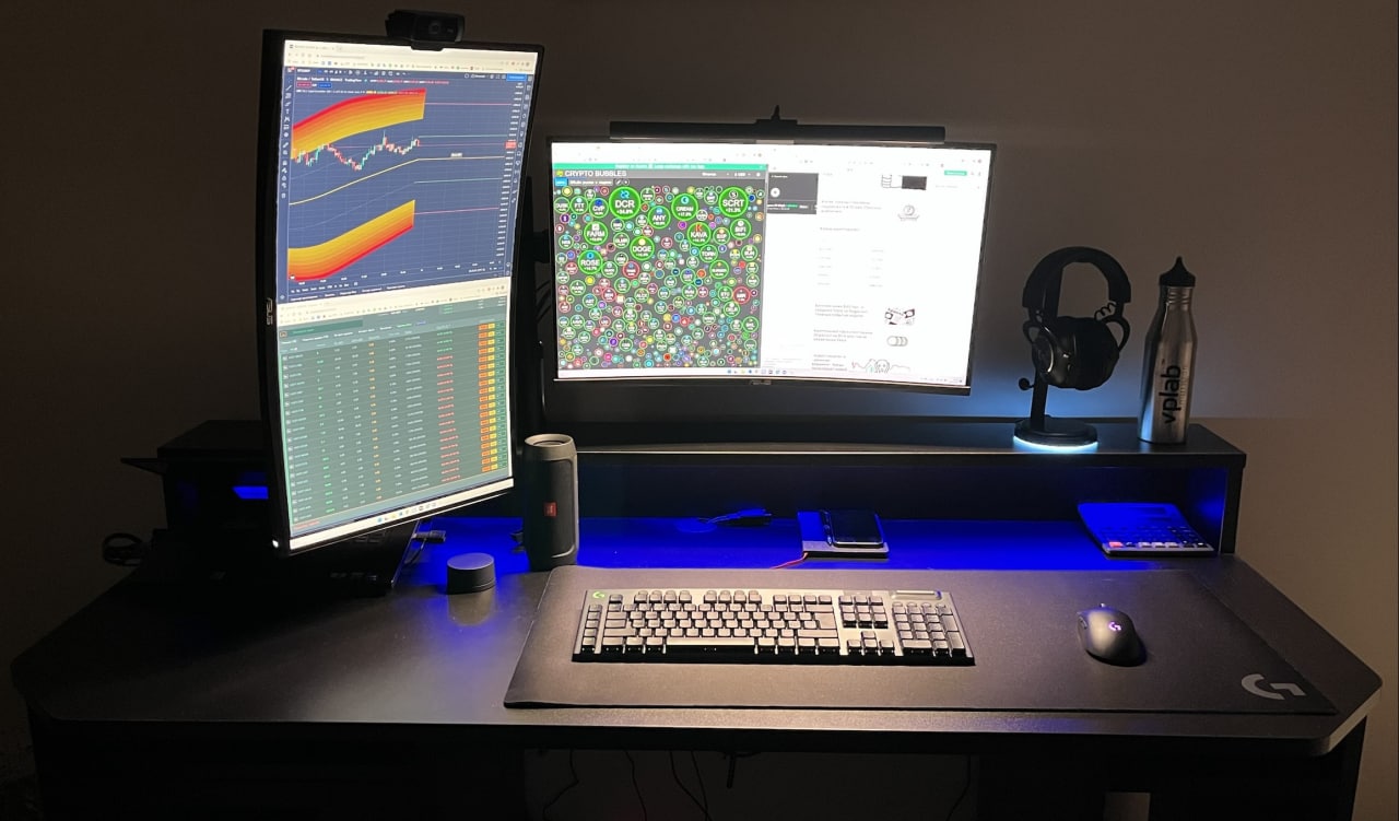 Для активной торговли, будь то настройка ботов, выбор пар, скальпинг или анализ рынка и графиков, использую специально отведённое для этого место, где я могу получить одновременно информацию из разных источников. Под рукой лежит блокнот (чаще два), калькулятор.