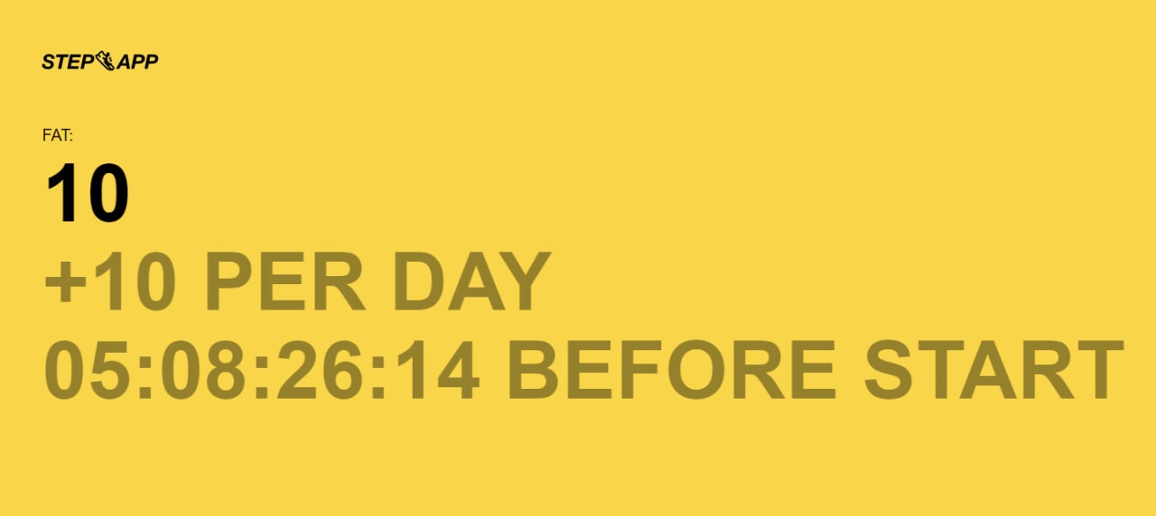 Всё очень просто, достаточно зарегистрироваться на сайте и вам будет начислять 10 $FAT в день. $FAT - это будущий игровой токен проекта StepApp.