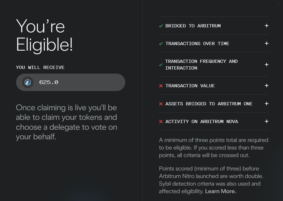 Проверяйте свои кошельки тут: arbitrum.foundation (естественно, если вы вообще в курсе, что такая сеть существует)