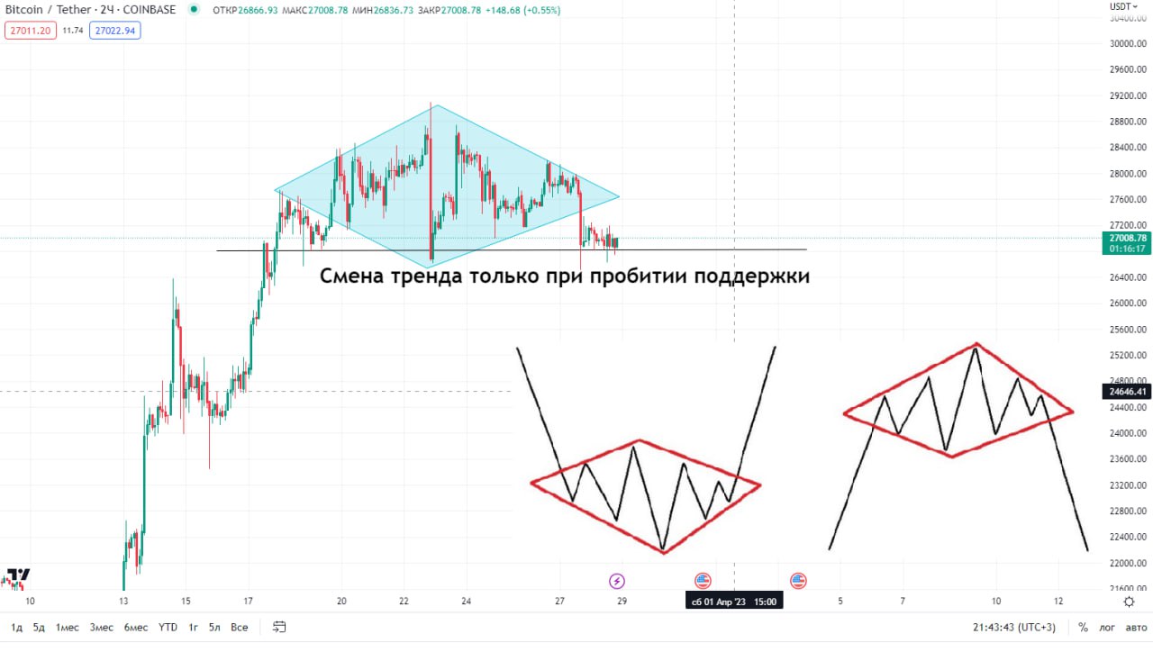 Я считаю, что это не совсем так, фигура начинается отработку только после пробития линии саппорта которая +- в районе дна алмаза - уж поверьте мне - я ни одну книжку прочитал по ТА