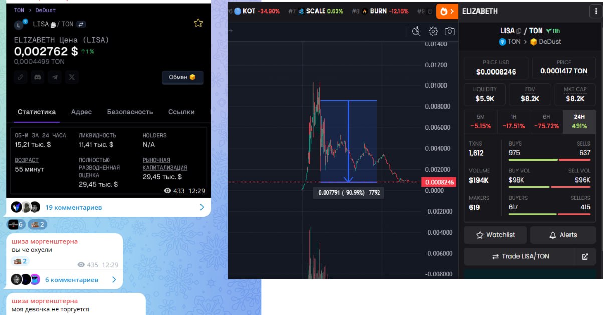 Не подумайте, что я конченый залетать во все рандомное, но утром сегодня скрин с монетой LISA был - и справедливости ради х2 быстро можно было забрать, хотя в итоге, конечно -90%