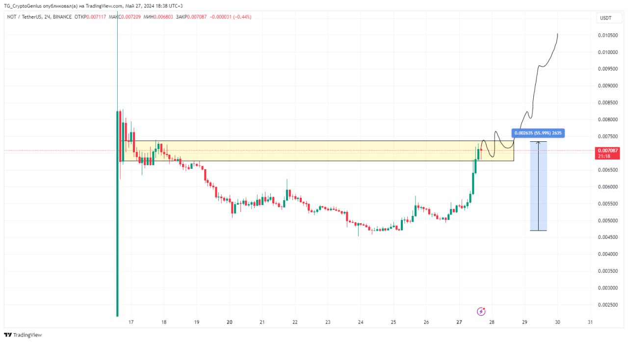 Ноткоин за последние пару дней прибавил +50% к стоимости
