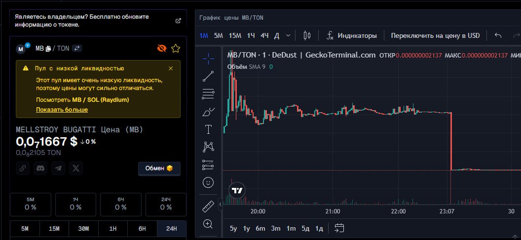 На днях создал токен MB (MELLSTROY BUGATTI) - график