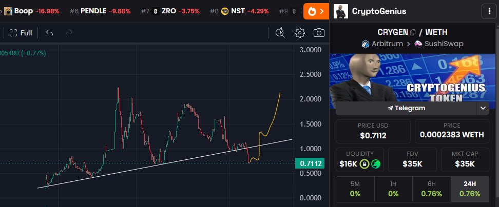 Токен: https://dexscreener.com/arbitrum/0x0696a78743f1ff6bf179e2383bb753ebc3184682