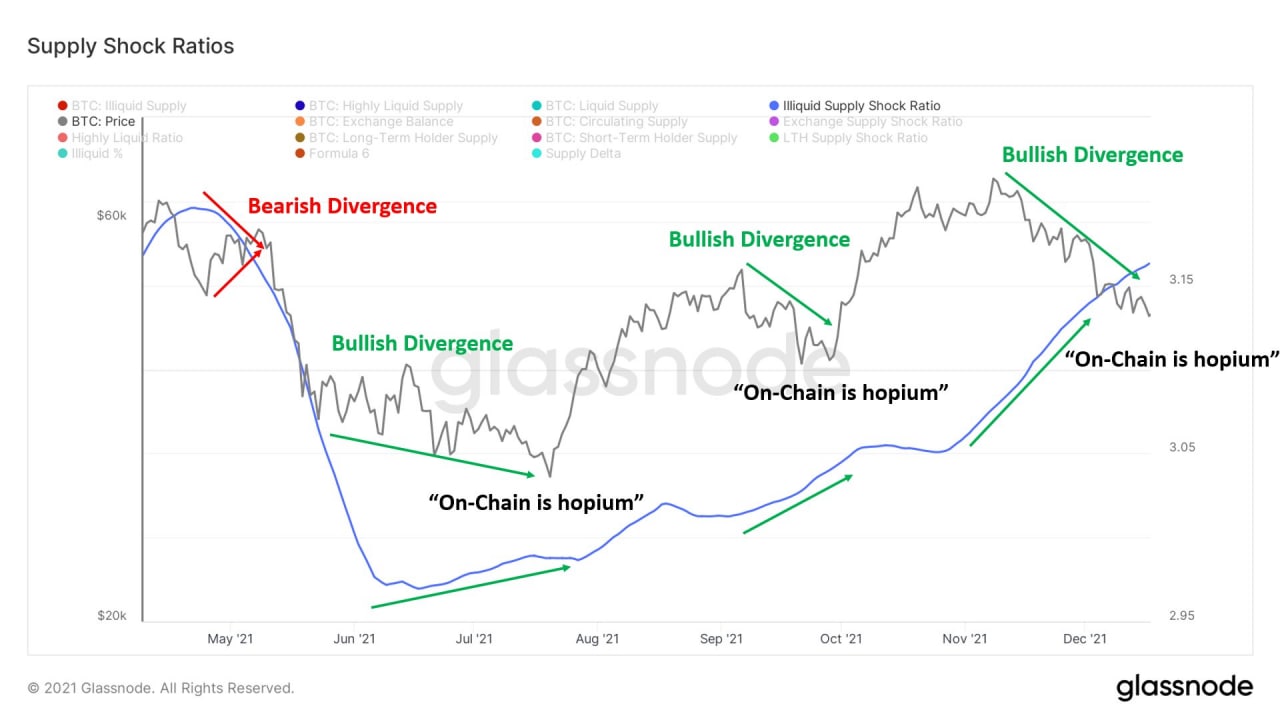 📈Популярный ончейн-аналитик Уилл Клементе обращает внимание на очень сильную бычью дивергенцию между последним падением цены биткоина и индикатором шока неликвидного предложения
