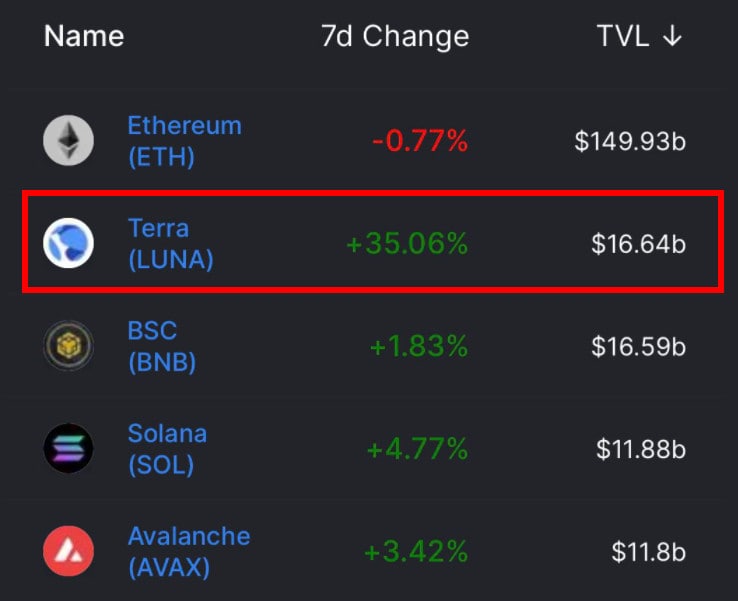 ⚡️TVL (объем заблокированной стоимости) в сети Terra уже больше, чем TVL Binance Smart Chain