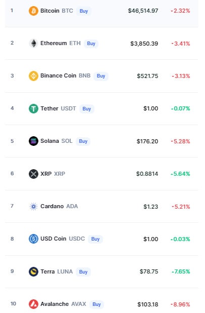 Лучше всех — LUNA (+7.33%) и XRP (+5.76%)