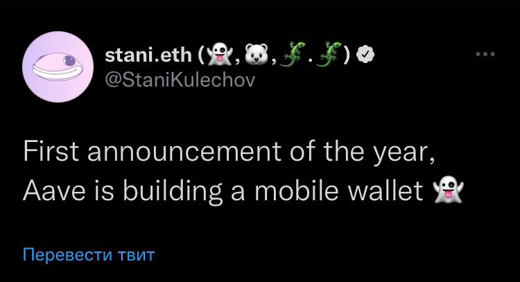 🗓Фаундер проекта Aave Станислав Кулешов сообщил о том, они готовят свой мобильный кошелёк
