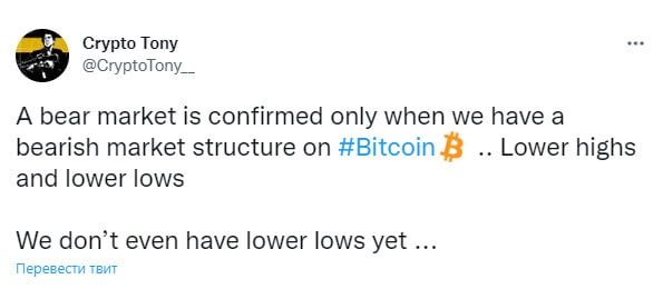 🗓"Медвежий рынок подтвердится только тогда, когда у нас будет медвежья структура на биткоине. Более низкие хаи и более низкие минимумы.