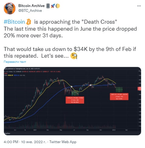Если это повторится, то к 9 февраля цена упадет до $34K. Давайте посмотрим..."