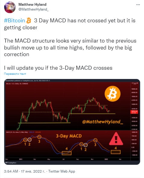 🗓Опережающий индикатор MACD на графике биткоина приближается к зоне возможного разворота