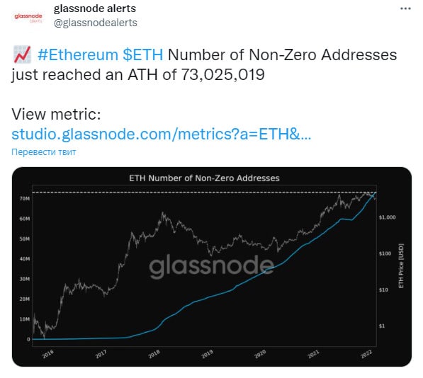 Новый АТН по количеству Ethereum-адресов с не-нулевым балансом - 73,025,019