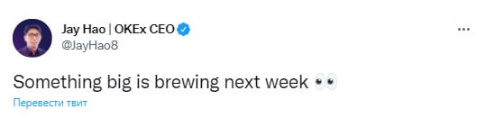 🗓СЕО биржи OKEX обещает на следующей неделе "что-то очень большое"