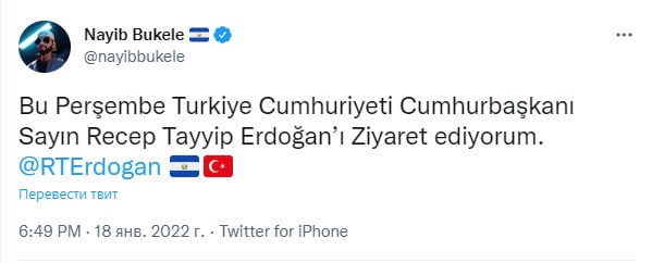 🗓Президент Сальвадора сообщил о предстоящем визите в Турцию к Эрдогану