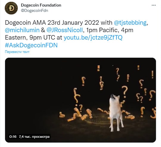 🗓Dogecoin Foundation проведут АМА-сессию 23 января. Участвуют Тимоти Стеббинг, Мичи Люмин, Росс Никол