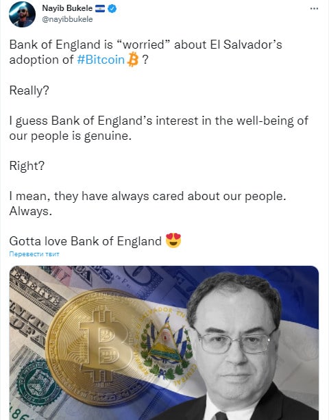 🗓Президент Сальвадора не мог не отстебать Банк Англии за их "беспокойство" о внедрении биткоина в его стране