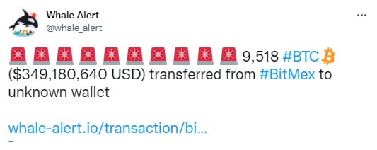 🗓Крупная покупка биткоинов на Bitmex: 9 518 BTC ($349,180 млн) были выведены на неизвестный кошелек