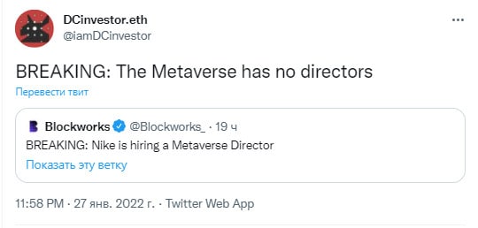 🗓Ответ на "BREAKING! NIKE ищет директора для Метавселенной!"