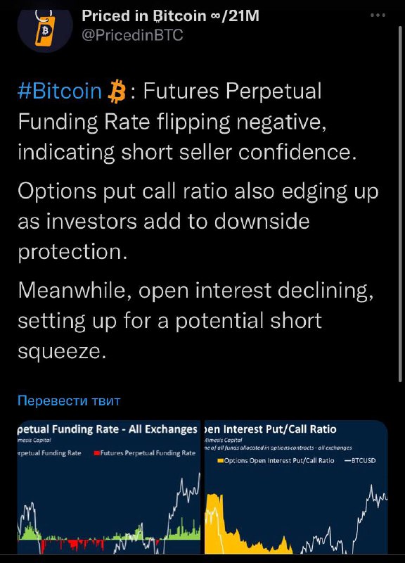 🗓"Фандинг становится отрицательным, что указывает на уверенность продавца в короткой позиции.