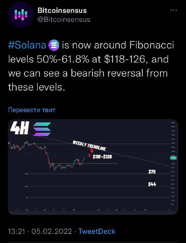 🗓Solana по уровням Фибоначчи ещё не исчерпала весь свой медвежий потенциал. Возможные цели — $75 и $44