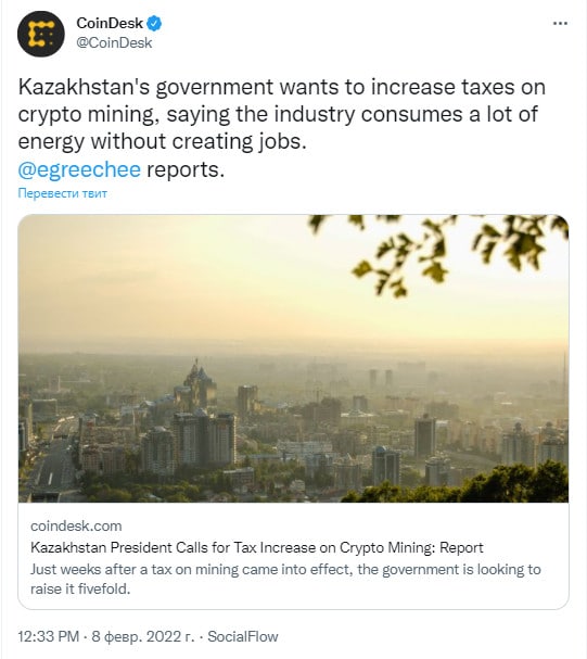 🗓Правительство Казахстана хочет увеличить налоги на майнинг криптовалюты, заявив, что эта отрасль потребляет много энергии, не создавая рабочих мест