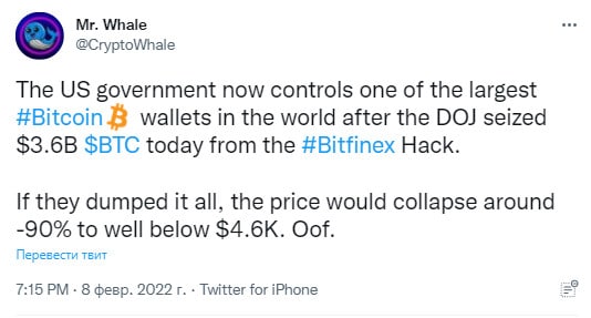 🗓Правительство США теперь контролирует один из крупнейших биткоин-кошельков в мире после того, как сегодня Министерство юстиции конфисковало 3,6 млрд долларов BTC, украденных в результате взлома биржи Bitfinex .