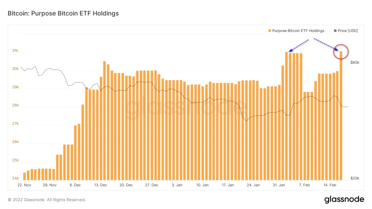 📊Канадский биткоин-ETF Purpose достиг АТН по количеству активов под управлением - выше 31 000 BTC