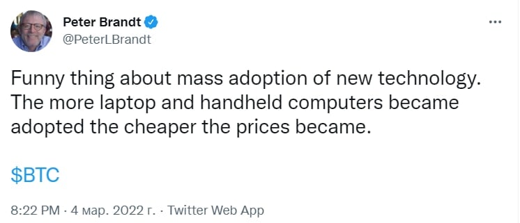 "Забавная вещь - массовое внедрение новых технологий. Чем больше становилось ноутбуков и карманных компьютеров, тем ниже становились их цены"