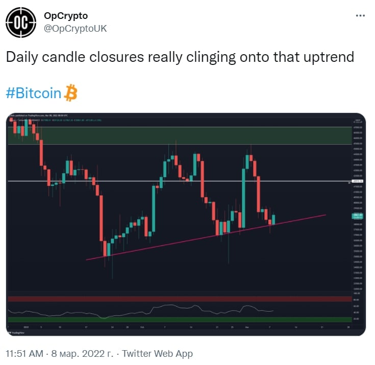 🧐 "Закрытия дневных свечей биткоина действительно цепляются за этот восходящий тренд"