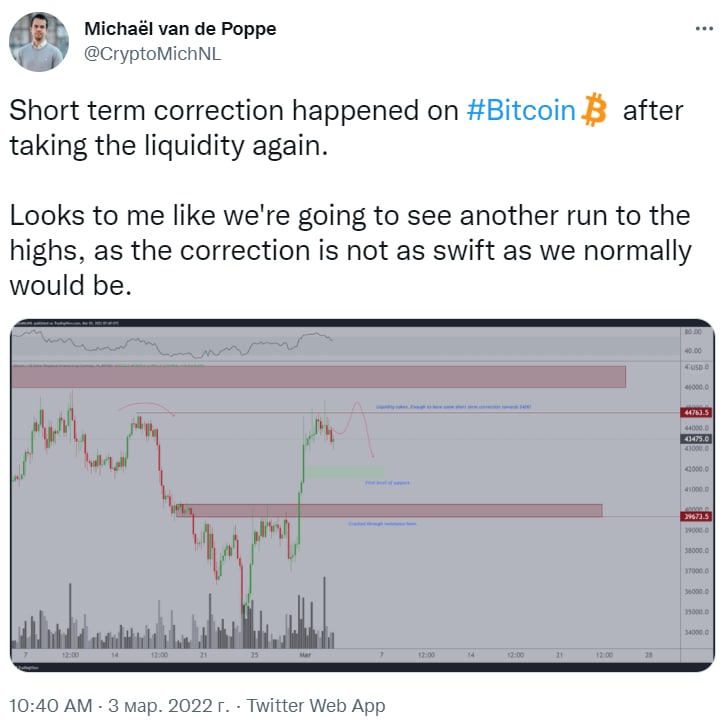"Произошла краткосрочная коррекция биткоина после повторного взятия ликвидности.