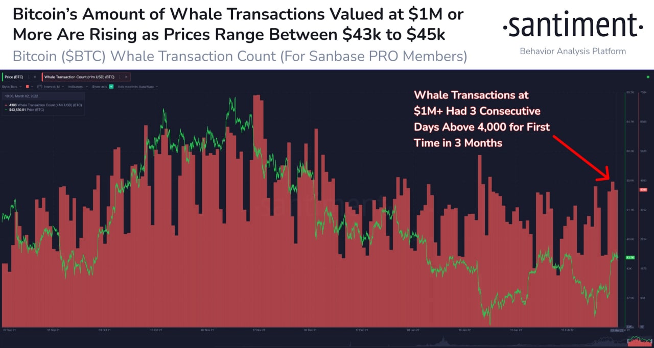 🐳 За последние три дня в сети биткоина было совершено 13,400 транзакций на сумму более 1,000,000$!