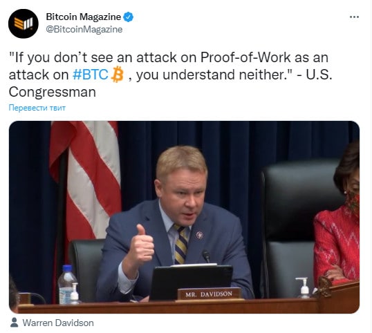 🗓"Если вы не воспринимаете атаку на PoW как атаку на биткоин, значит вы не понимаете ни того, ни другого" - Конгрессмен США Уоррен Дэвидсон