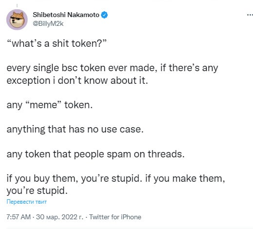 🗓Билли Маркус (создатель DOGE) о том, "что такое дерьмовый токен?»