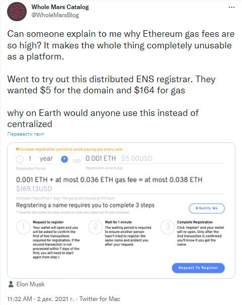 🗓Сеть Ethereum запросила комиссию в $164 за домен в стоимостью 5$!