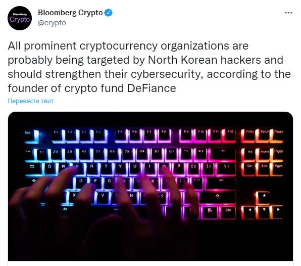 🗓По словам основателя криптофонда DeFiance, все известные криптовалютные организации, вероятно, стали мишенью северокорейских хакеров и должны усилить свою кибербезопасность