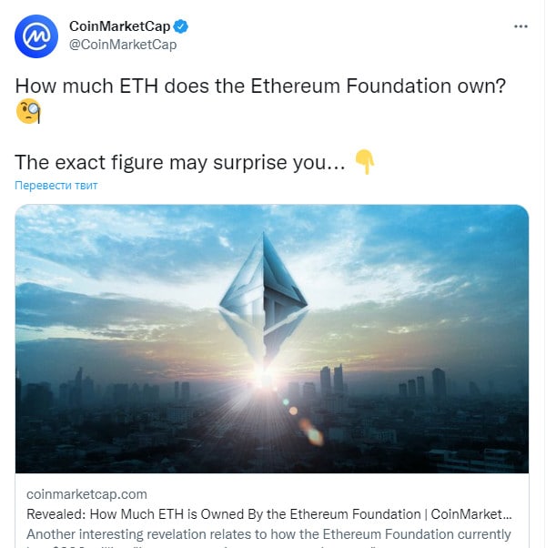 🗓"Ethereum Foundation сообщил, что в настоящее время в его обороте находится всего 0,3% всего предложения Эфира"