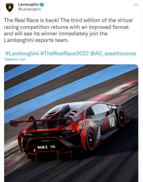 🗓Lamborghini объявили, что победитель третьей серии игры Real Race сможет присоединиться к их заводской киберспортивной команде