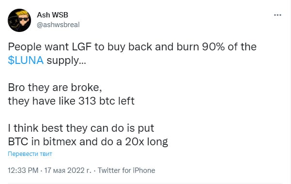 "Люди хотят, чтобы LGF выкупили и сожгли 90% эмиссии LUNA …