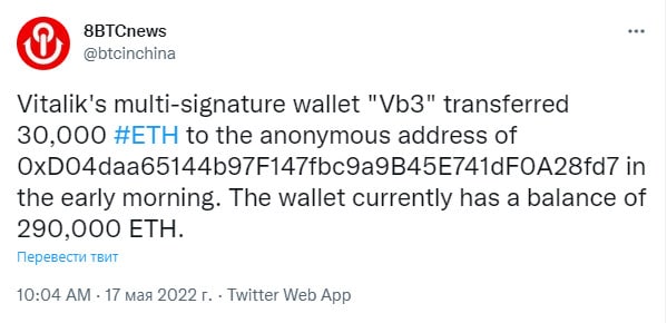 🗓Кошелек с мультиподписью «Vb3», который принадлежит Виталику Бутерину, рано утром перевел 30 000 ETH на анонимный адрес 0xD04daa65144b97F147fbc9a9B45E741dF0A28fd7. В настоящее время баланс кошелька составляет 290 000 ETH.