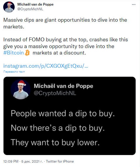 Вместо FOMO-покупки на вершине, такие обвалы, как этот, дают вам огромную возможность зайти в биткоин со скидкой"