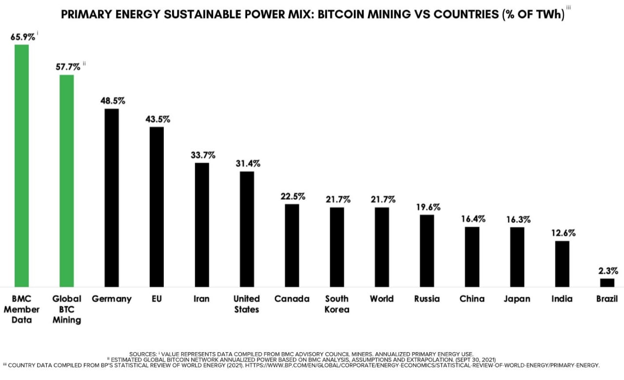 ✅ На "зелёную" энергию, используемую для майнинга биткоина, приходится 57,7% всех энергозатрат сети. Таковы данные Bitcoin Mining Council за III-квартал
