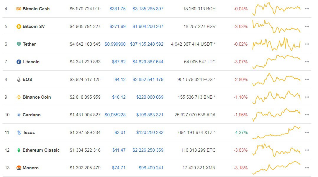 Стоимость токенов Tezos, напротив, сейчас прибавляет и уже превысила $1,835 млрд. На прошлой неделе TXZ пробился в топовую десятку альткоинов.