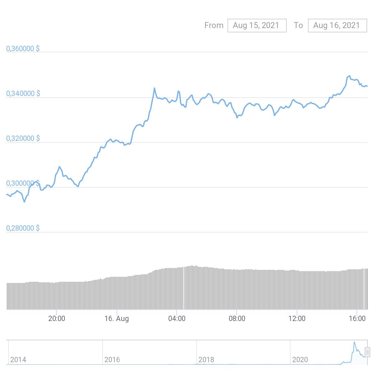 В середине мая, во время предыдущего исторического забега, Cardano достигал $2,174, а затем цена криптовалюты обрушилась до $1,05 в конце июля.