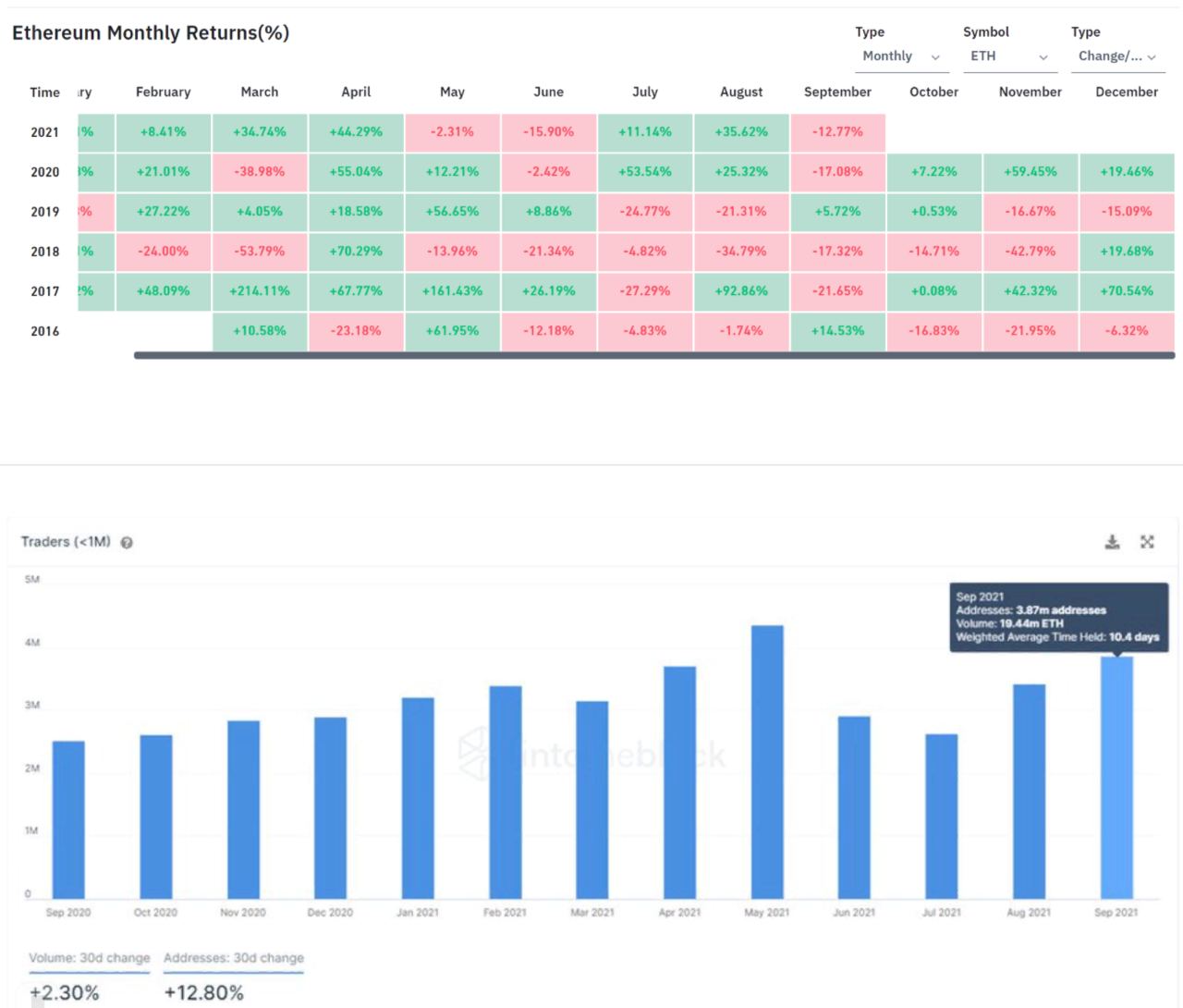Второй год подряд эфир завершил сентябрь с потерями. По данным ByBt, по итогам первого месяца осени стоимость ETH упала на 12,77%. В сентябре прошлого года альткоин подешевел более чем на 17%.