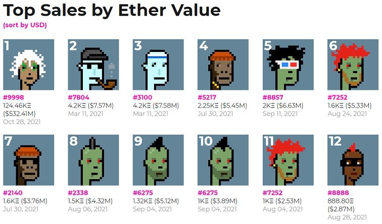 Предыдущий рекорд был установлен в марте – тогда редчайшего «инопланетянина» из коллекции продали за 4 200 ETH. В последнем случае сумма составила 124 457 ETH или более $530 млн по текущему курсу, причем данный NFT не обладает уникальными особенностями, которые могли бы обосновать высокую цену.
