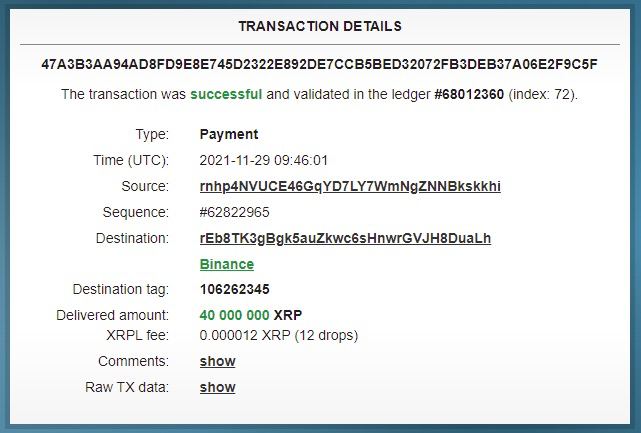 40 млн. XRP переведены на биржу Binance и проданы