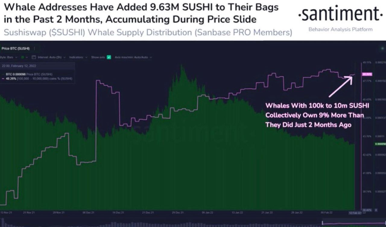 Крупные инвесторы, которые часто называют китами, приобретают токены SUSHI с середины декабря прошлого года.