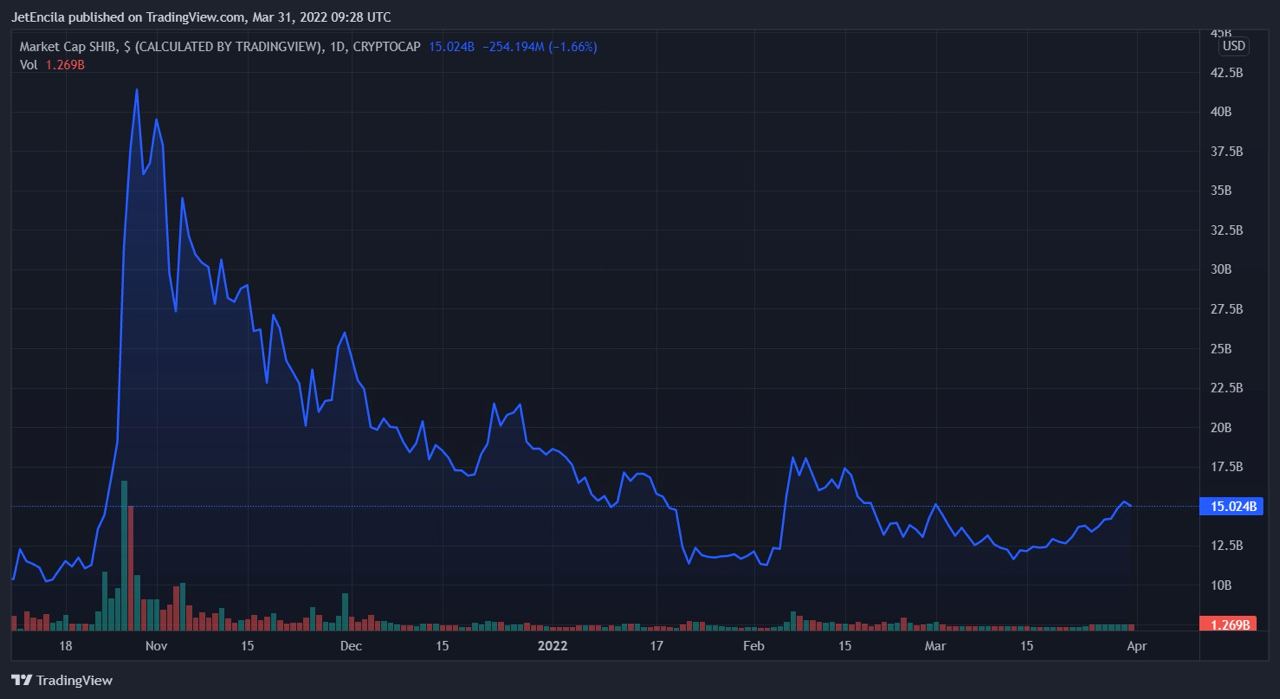 Альткоин Shib Inu (SHIB) за последние семь дней прибавил в стоимости почти 15%. Его капитализация 31 марта превысила $15,221 млрд.