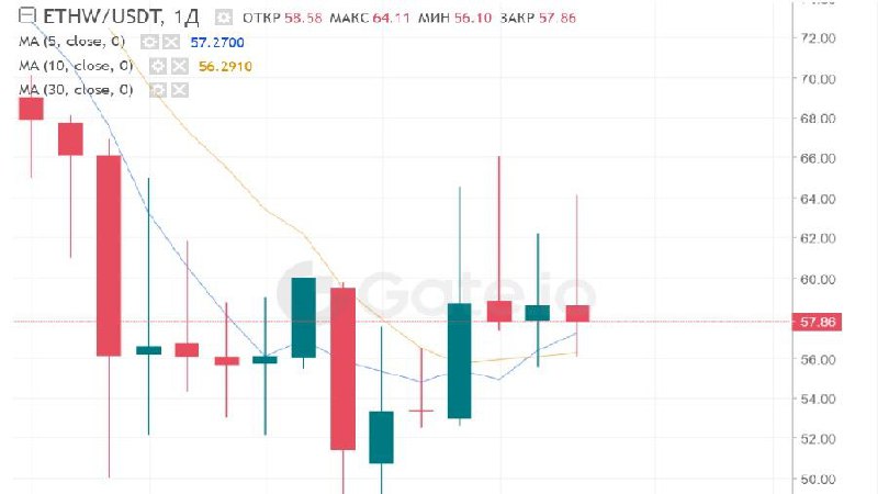 Котировка ETHW на бирже Gate. io колеблется в диапазоне от $56 до $64. Биржи Poloniex и MEXC также запустили торги токенами будущего форка Эфириума. По данным СoinМarketСap, стоимость долговых расписок ETHPoW зафиксирована на уровне $45.87, а суточный объем торгов данным активом превысил $900 000.